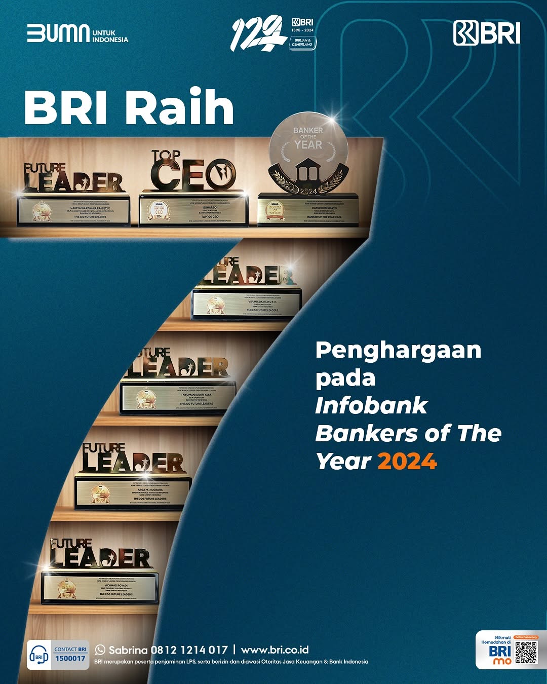 Sementara itu, 5 penghargaan lainnya diperoleh dalam kategori The Future Leaders 2024 yang diberikan kepada Direktur Keuangan BRI Viviana Dyah Ayu, Direktur Digital dan Teknologi Informasi BRI Arga M. Nugraha, Senior Executive Vice President (SEVP) Change Management and Transformation Office BRI Harsya Wardhana Prasetyo, SEVP Treasury & Global Services BRI Achmad Royadi, dan SEVP Operations BRI I Nyoman Sugiri Yasa.